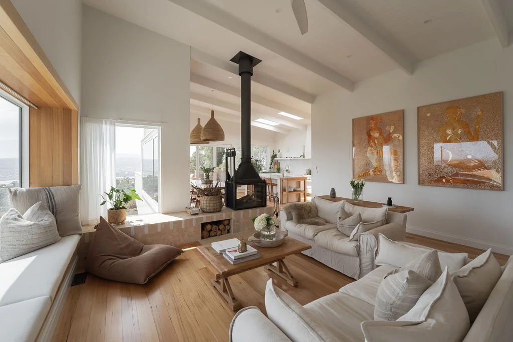 “I always knew that I wanted the home to have big windows to lie in and look out at the view,” Lauren says. “Every room you go into feels light and bright - we’re so lucky to wake up to this every day.”