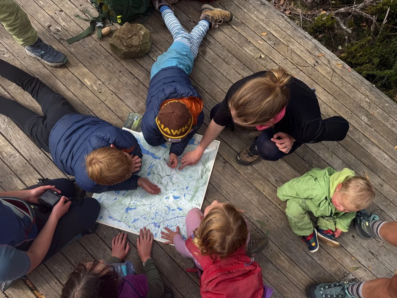 Little fingers trace contour lines and lakes until someone shouts, “That’s us!”