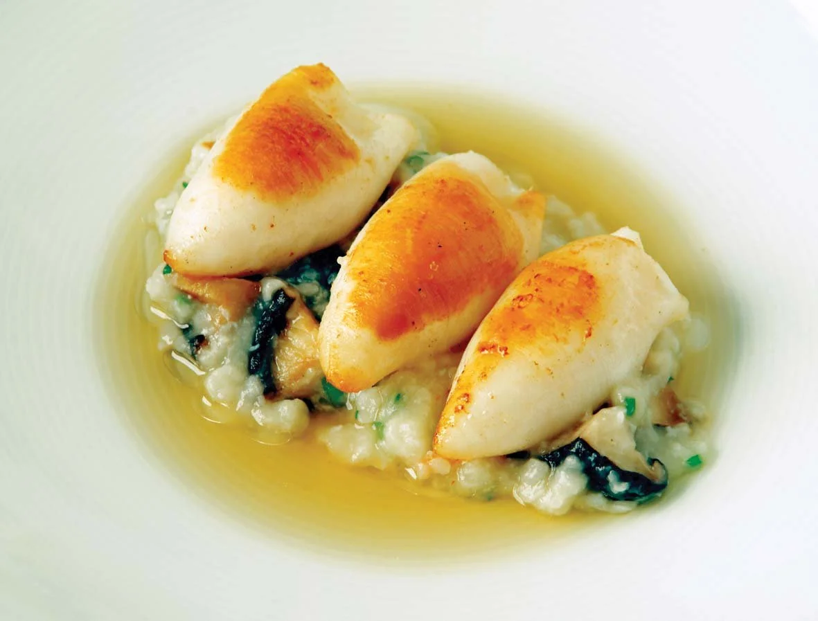 Calamari, scallops, congee by Hugh Whitehouse (image supplied)