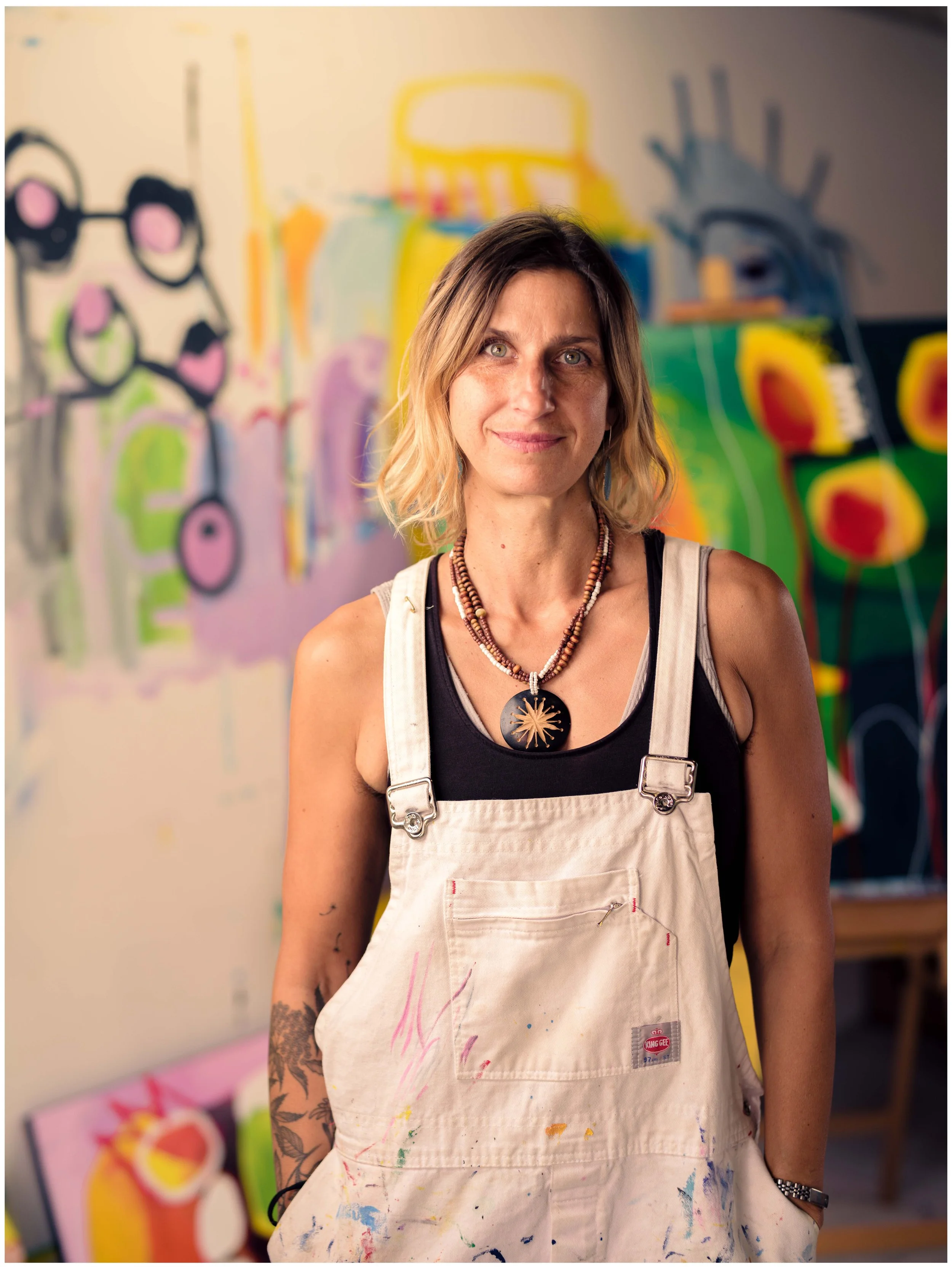 I was working in the theatre space when Covid hit, and I wasn’t keen on the idea of rehearsing with a mask. I realised that I needed to find something that I could do without other people. I had dabbled with and really enjoyed painting when I was pregnant with my son Merlin, and this felt like the right time to return to it. I started with drawings - lines and inks, playing it safe - but in 2023, I found a really cool studio on a private property in Moonah, and started properly painting.
