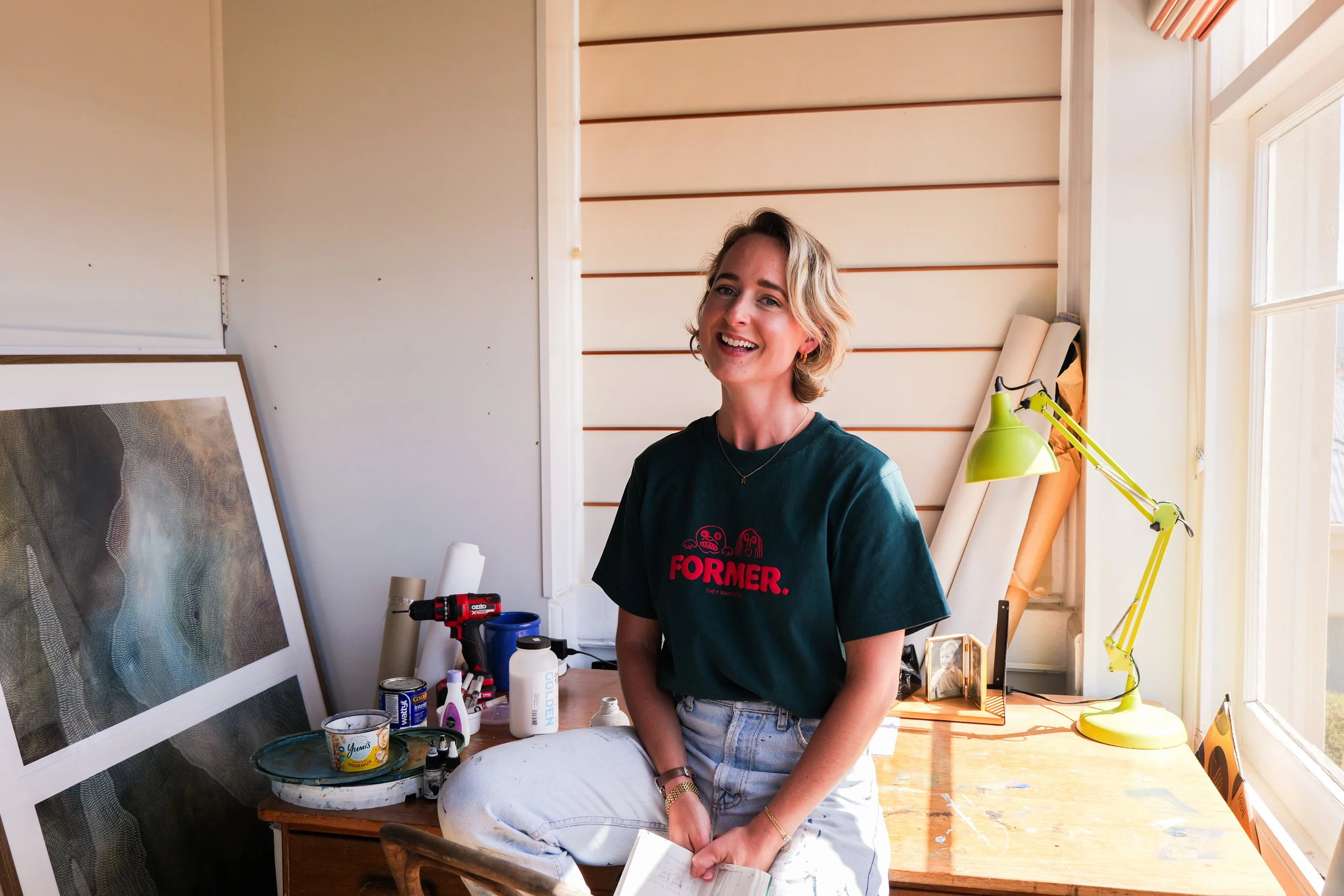 I start every day with a boiled egg, and two slices of toast - one with Vegemite, and one with Grumpy Bee creamed honey from the market. I’ll generally do some life admin from home - checking in with orders, prints that need to be signed and posted, and whatever else needs to be done. I love this part of the day. I love the challenge, the goal-setting, the ticking off the list - it’s a really nice counterpart to the fluidity and flow and freedom that I need in my practice as an artist.